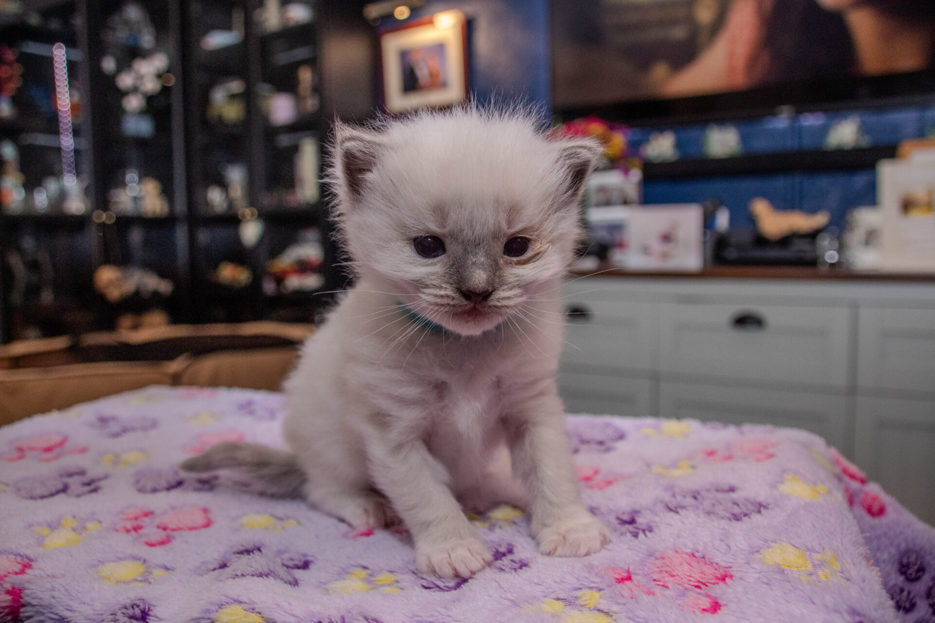 (Brown) Edison – Edison’s story began with a purr and a cuddle. This seal colorpoint Ragdoll kitten is more than just a pet; he’s a furry friend waiting to share your life’s adventures. Imagine cozy nights, playful days, and a lifetime of love. Is your heart ready for Edison? Contact us to learn more about making him part of your family.